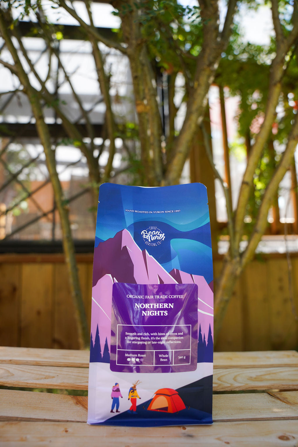 An exotic and smooth blend of organic Fair Trade coffees with a sweet berry flavour and hints of spice & cocoa. Reach for the stars and northern lights!